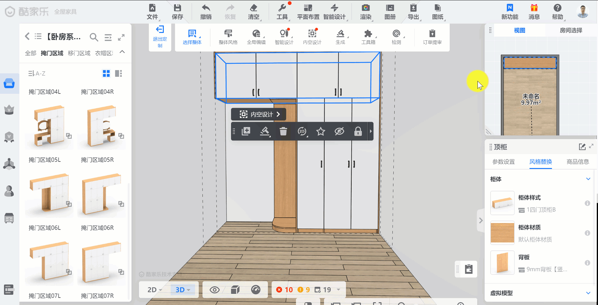 第一步:选择设计精品库-卧房系统-掩门区域06L(或其他掩门区域);