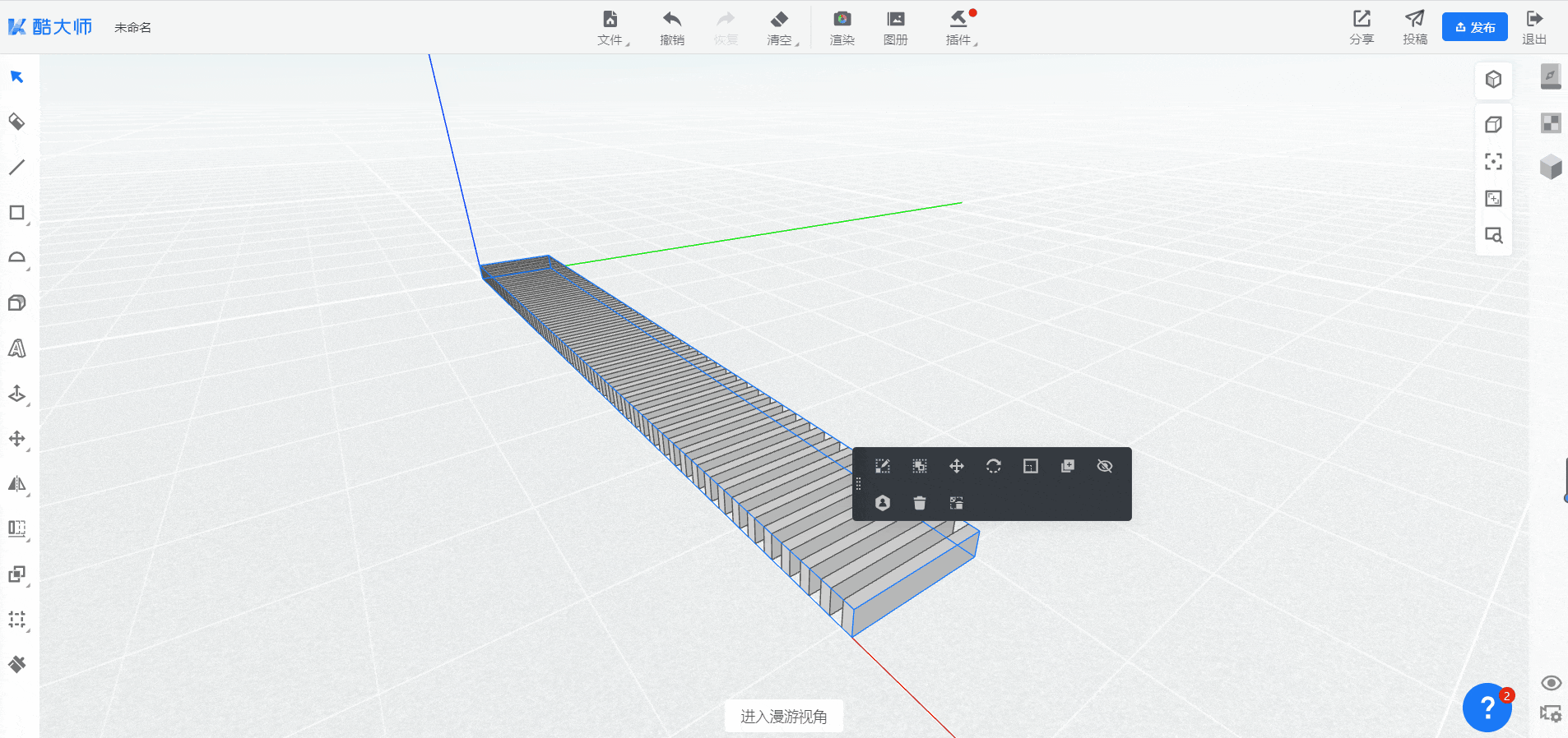 首先绘制一个【矩形】长:40mm、宽500mm(键盘Tab键进行长宽数值切换)使用【拉伸】工具将平面拉伸为一个体,如下图所示;