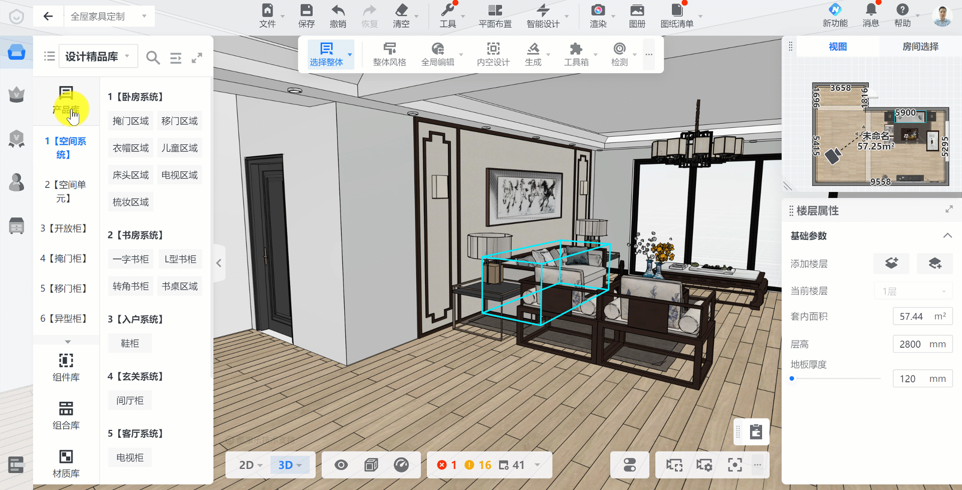 亮点一:空间设计书柜整体方案,用户可直接调取拖入使用,方便快捷。
