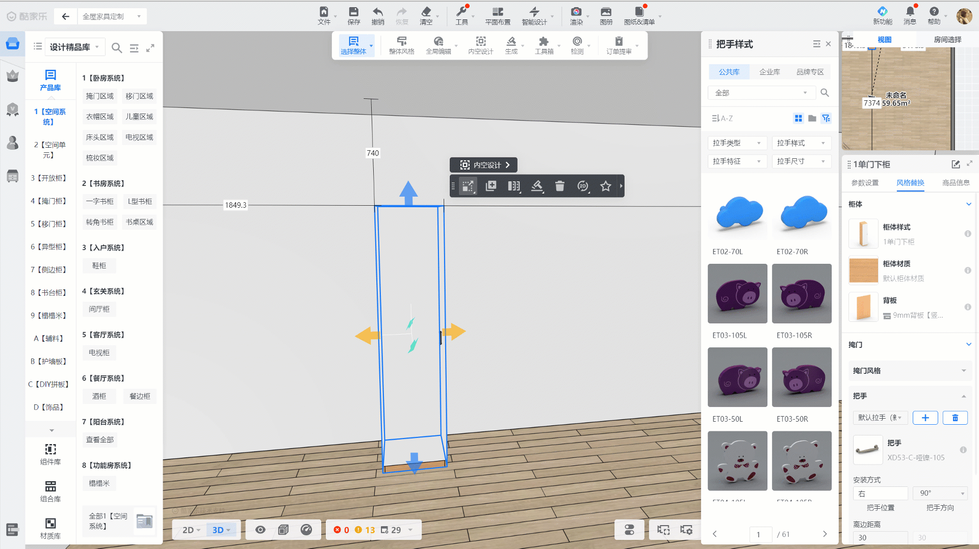 公共库—设计精品库(厨卫定制/全屋家具定制)—风格替换—把手—公共库。