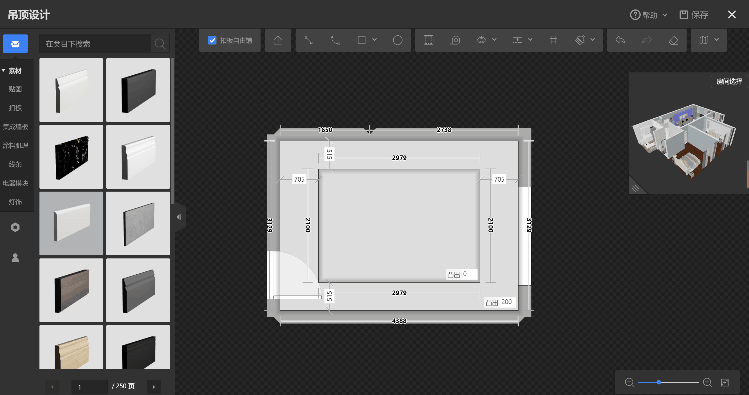 满足用户在顶墙设计页面中进行剖面线条的位置编辑。