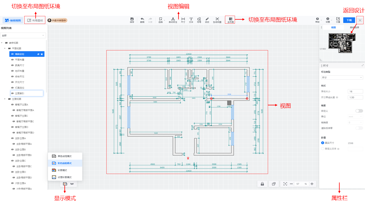 立面视图=通过立面索引可生成全屋立面视图,点击查看教程