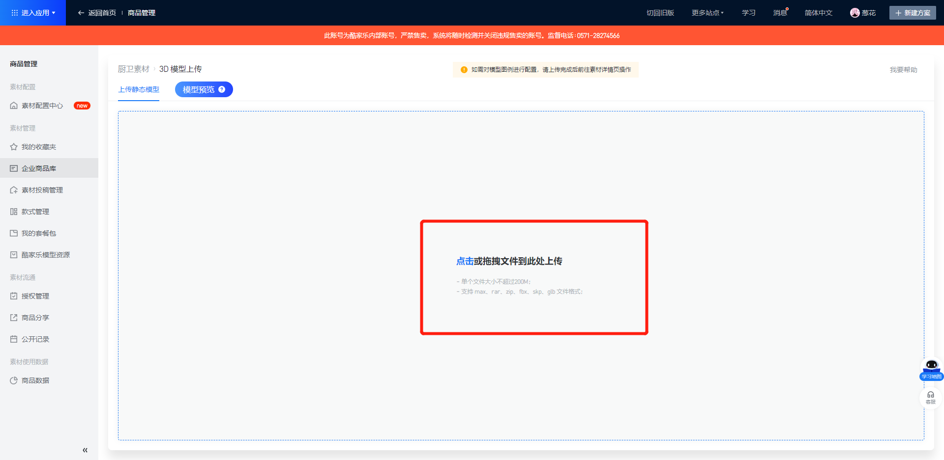 1. 商家后台-商品管理-商品管理-橱柜定制-上传素材-3D模型