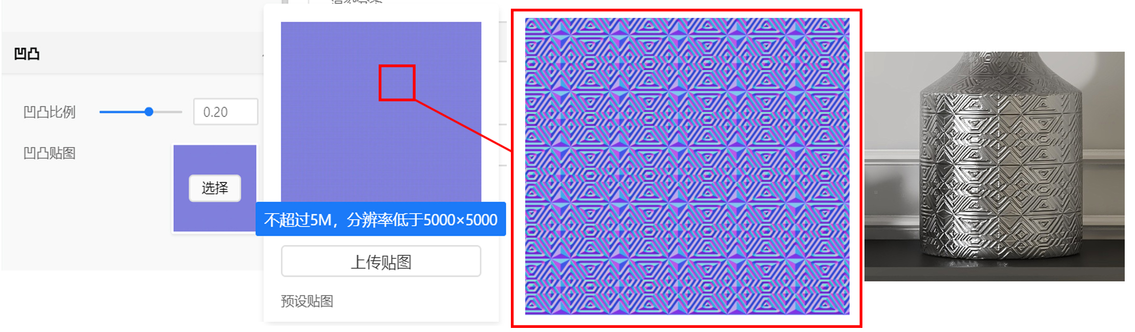 5.调整凹凸纹理(凹凸贴图),凹凸强弱(凹凸比例),