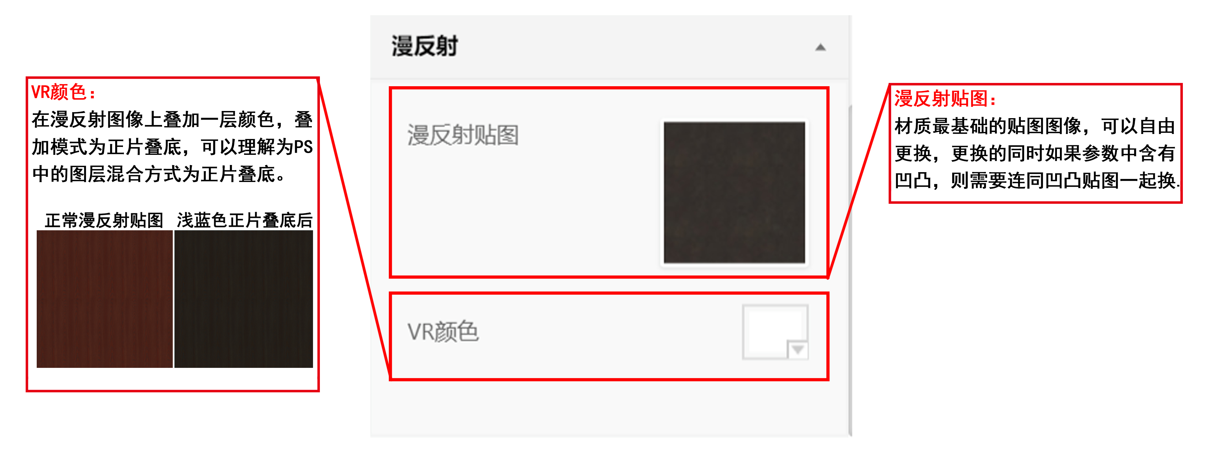 漫反射就相当于材质显示的最基本的图案,上传时需要注意尺寸和文件大小。