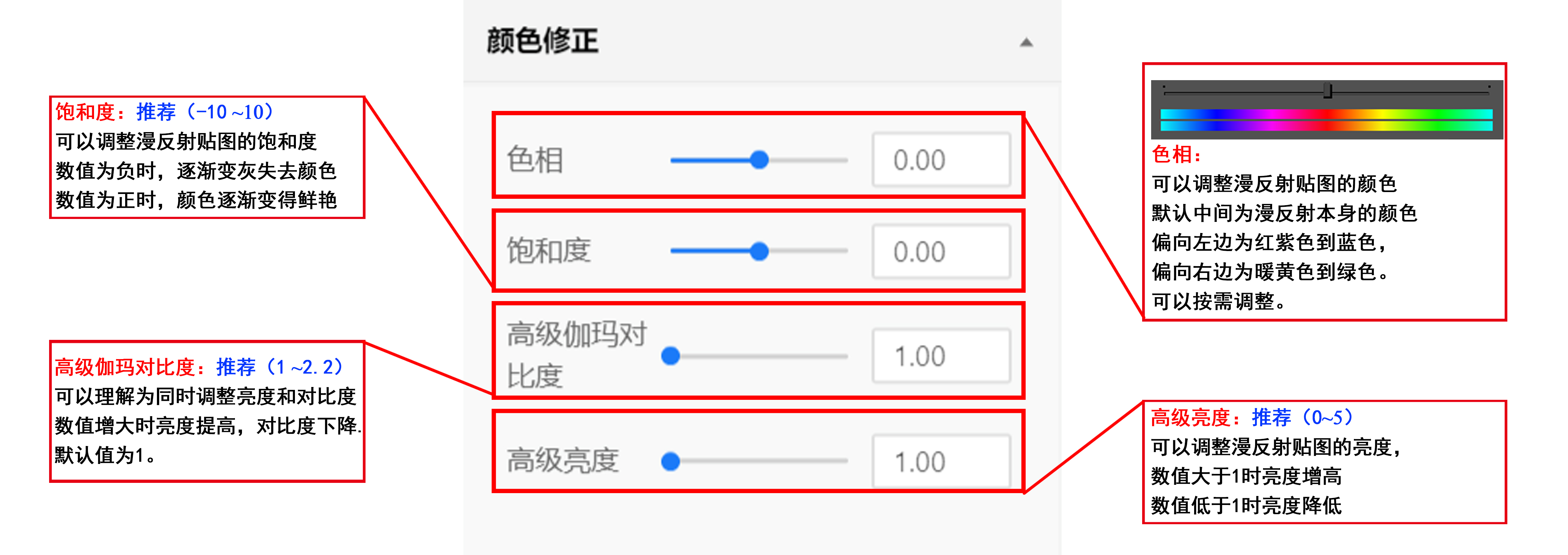 2.颜色校正,无特殊情况无需调整。(特殊情况需要调整可以参考文章最下面的参数详解)