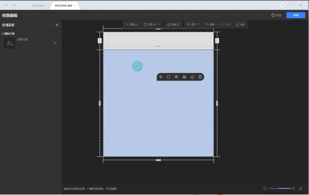 2.选中墙面区域,选择工具栏中的腰线工具。