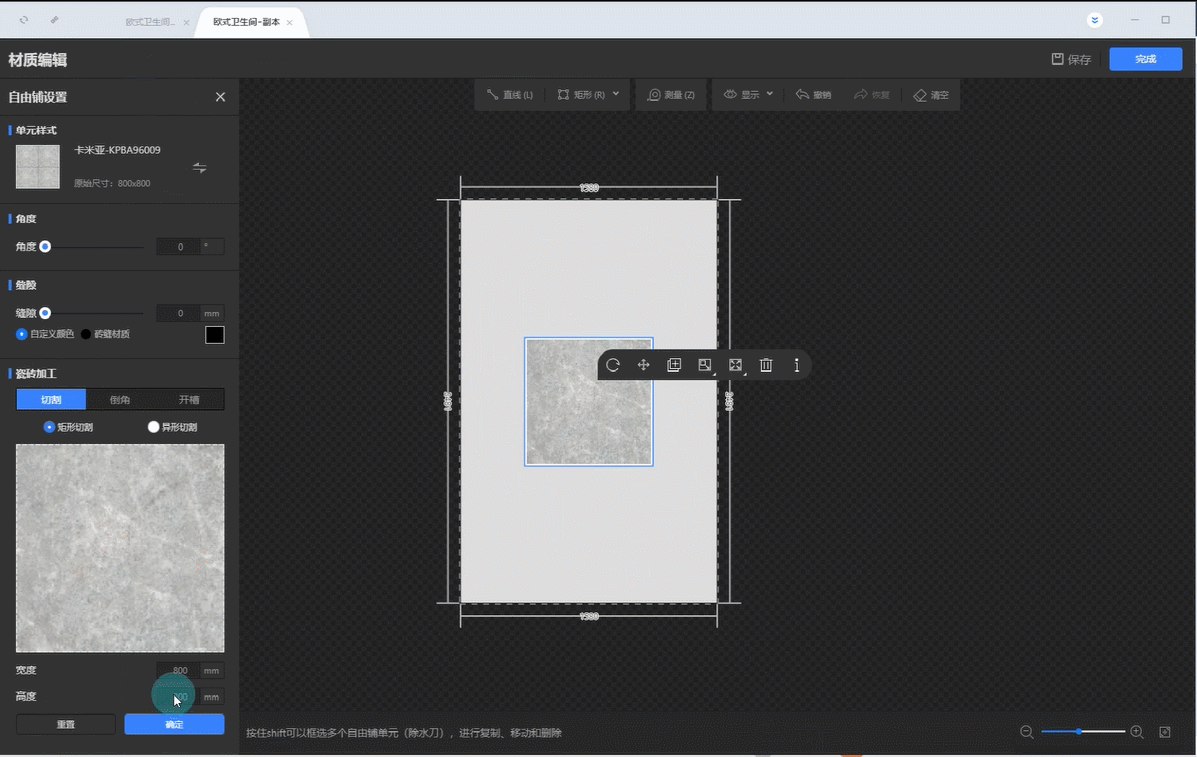 15.左键单击瓷砖选择拖拽铺贴中的旋转混铺进行铺设。