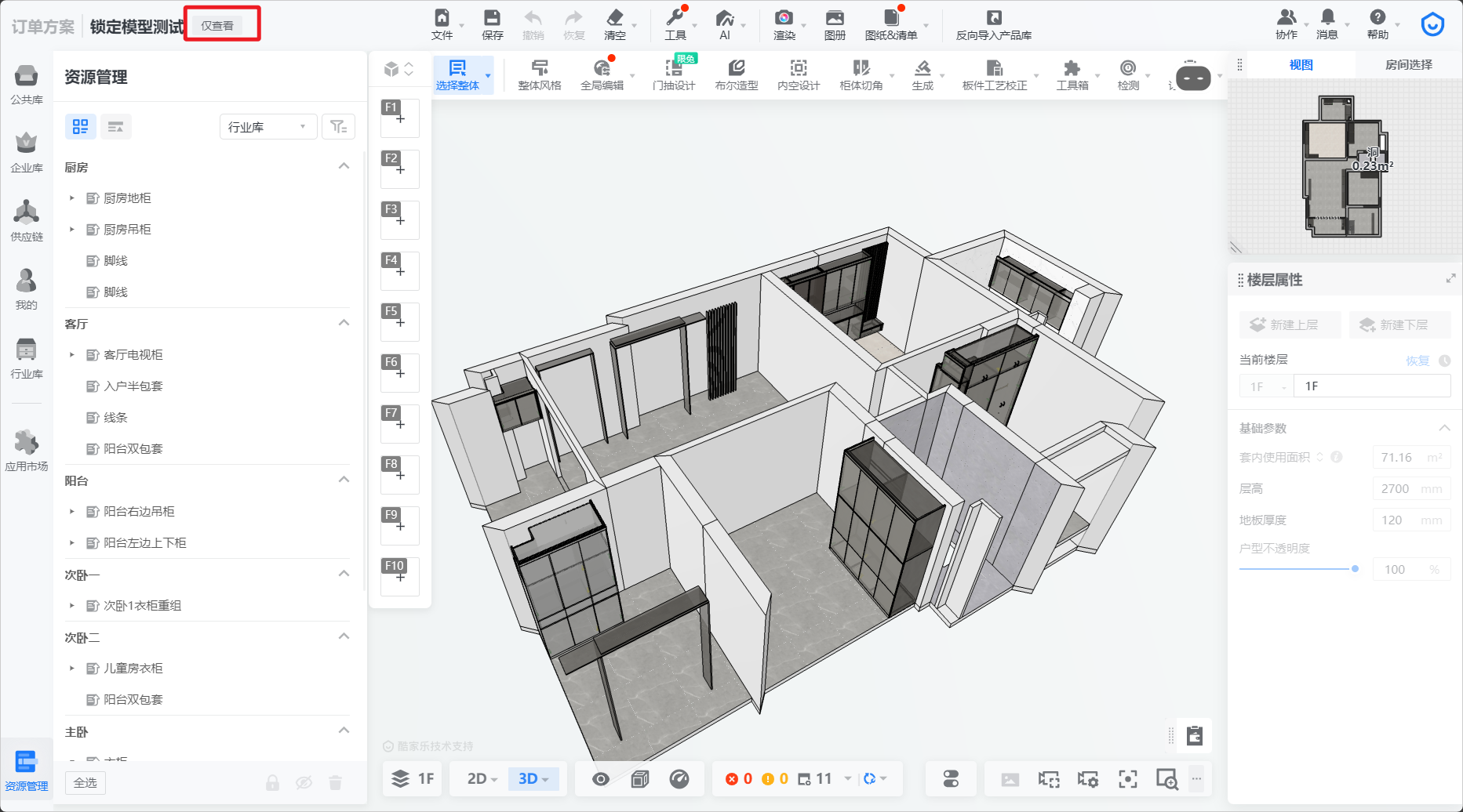 3)审拆员进入订单方案,模型锁定不可改,因为进入的订单方案是“仅查看”模式