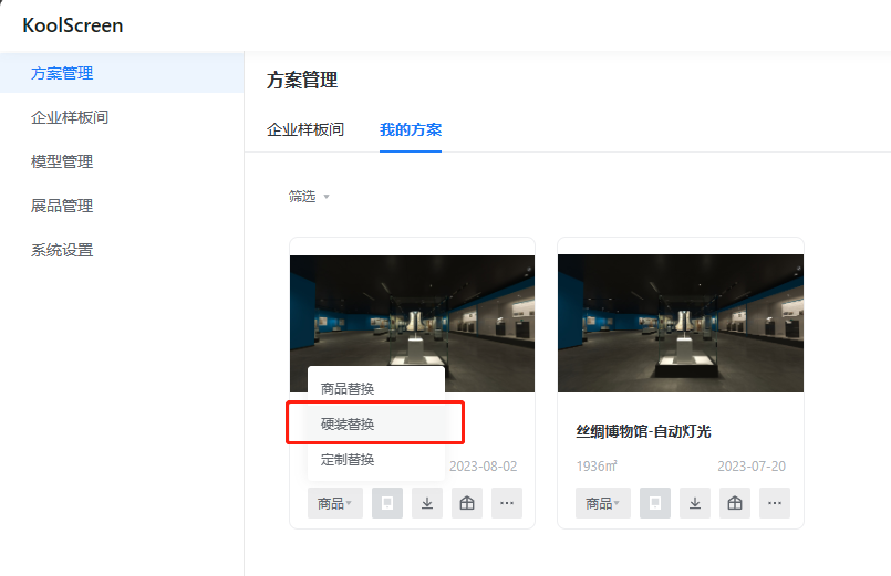 - 进入koolscreen,选择方案,选择定制替换,选择要替换的贴图材质