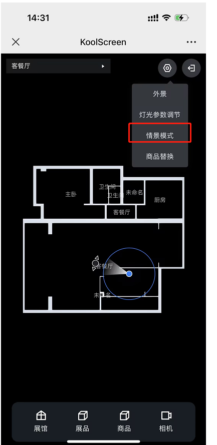 - 进入koolscreen,构建方案时,选择情景模式灯光