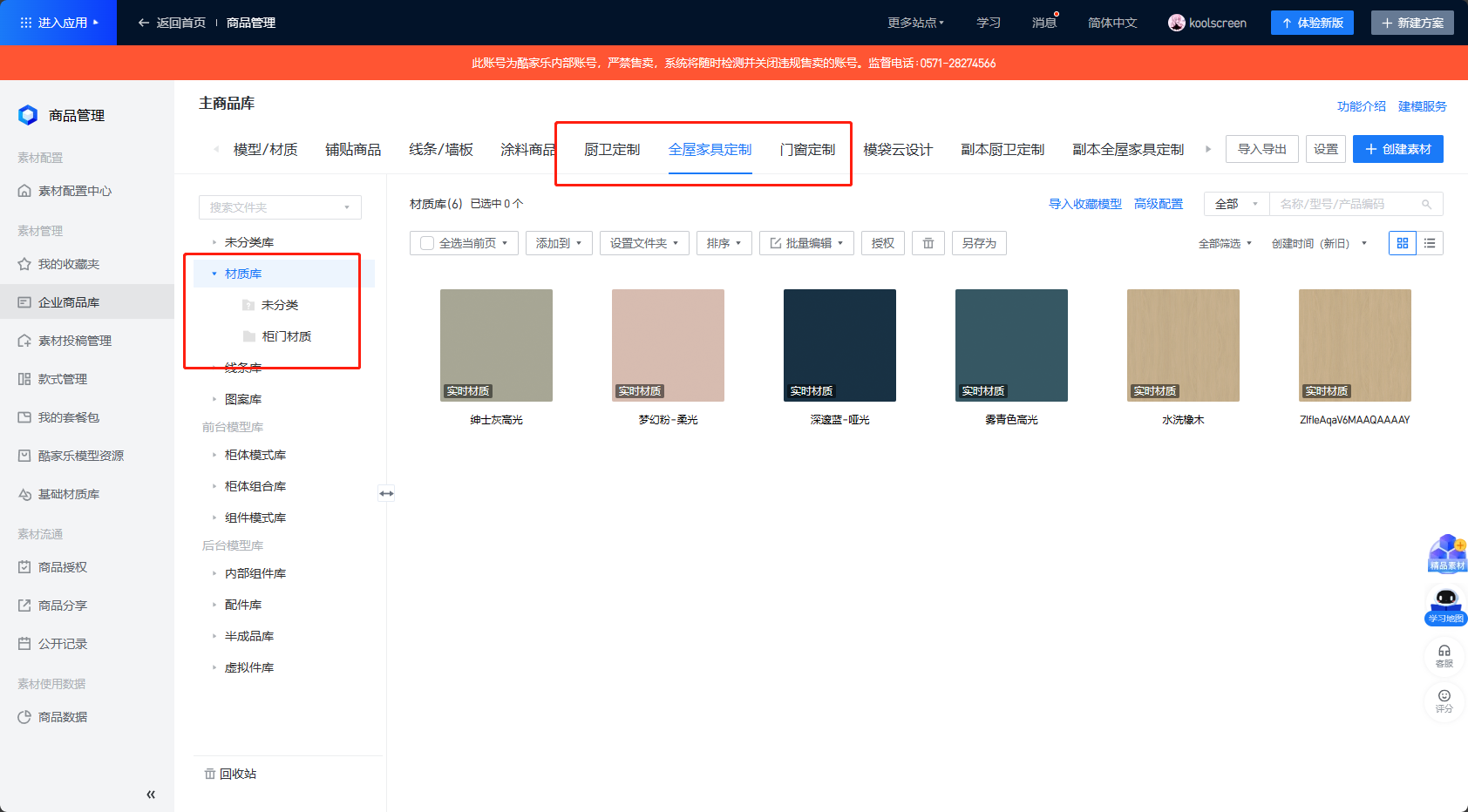 - 在酷家乐商家后台,企业商品库,上传参数化模型材质贴图