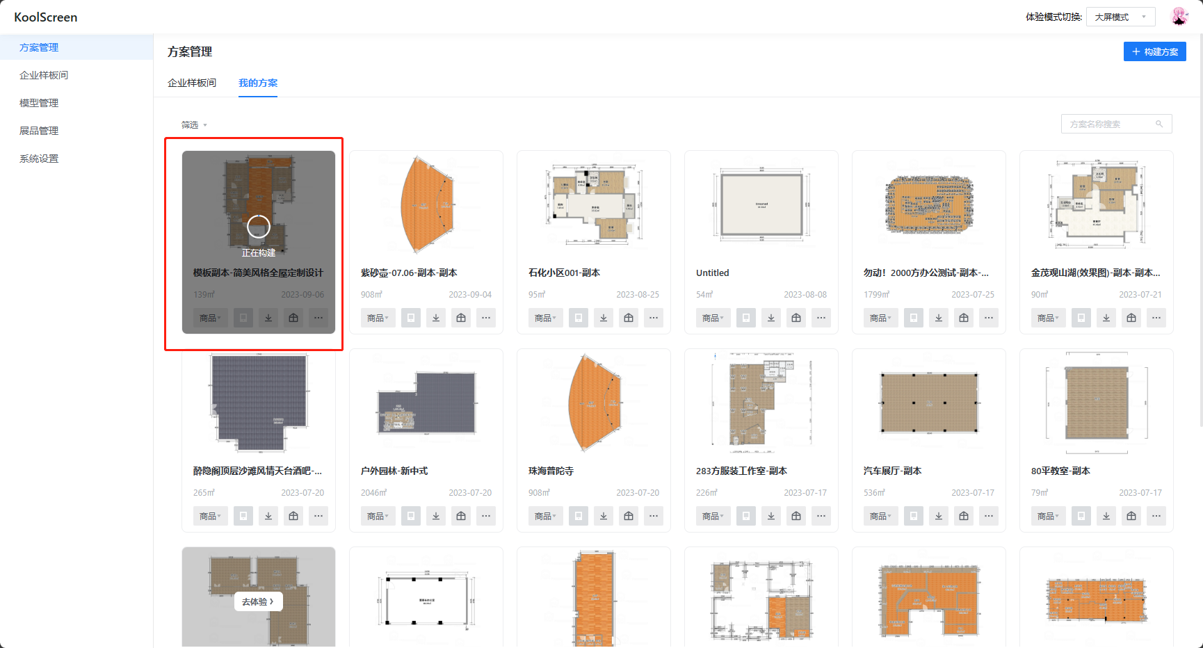 - 方案构建,支持账号下任意酷家乐方案的构建转化