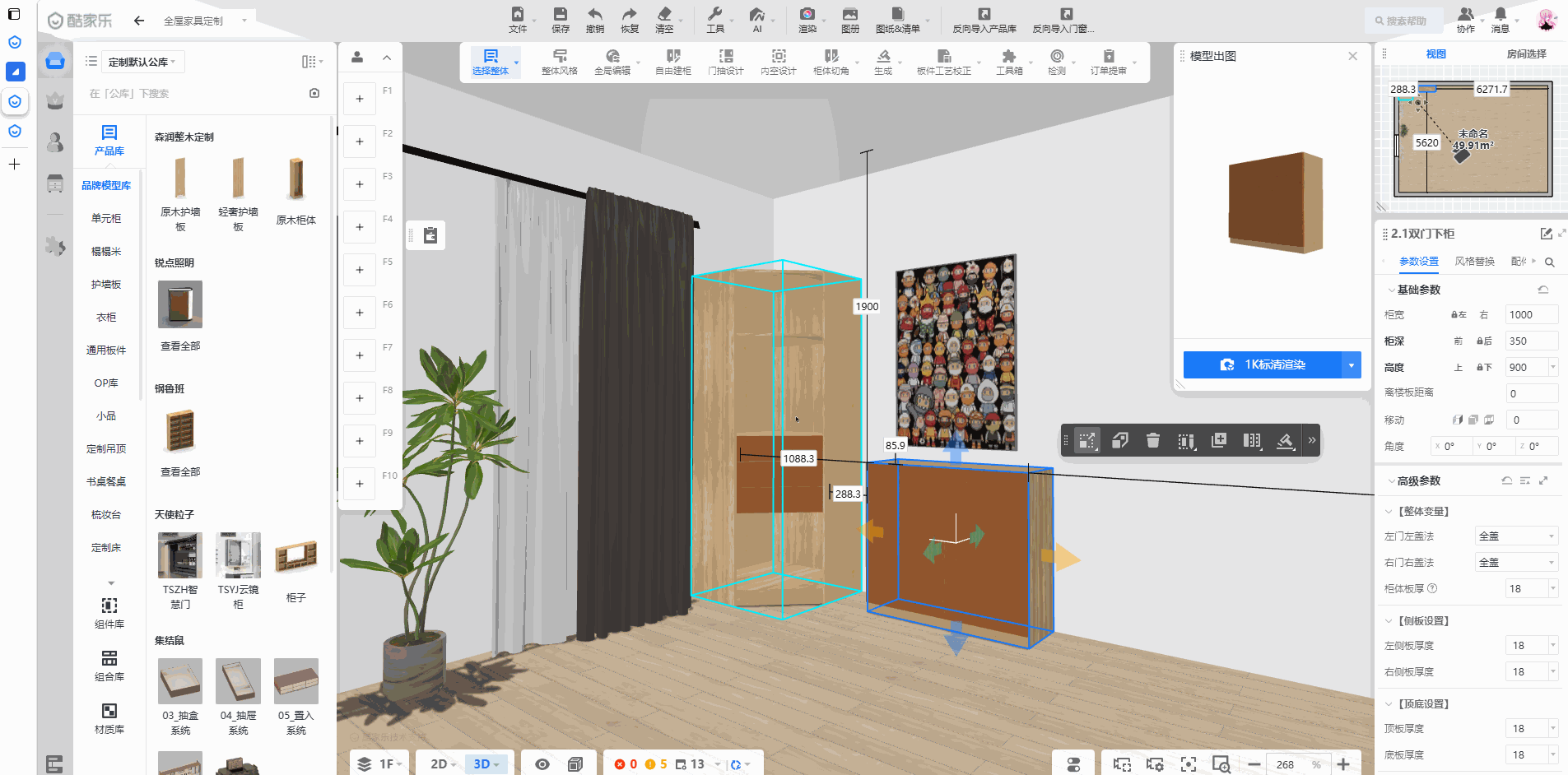 在定制工具使用过程中,模型搭建完成或修改后可以一键出图预览,快速看到调整效果