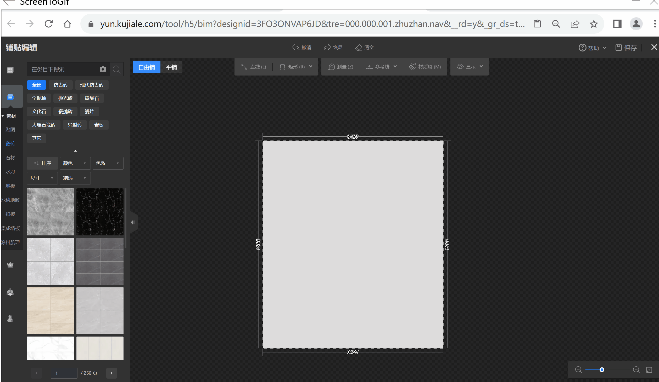 1、从左侧栏拖拽瓷砖、石材、地板、地毯地胶时切换模式演示;