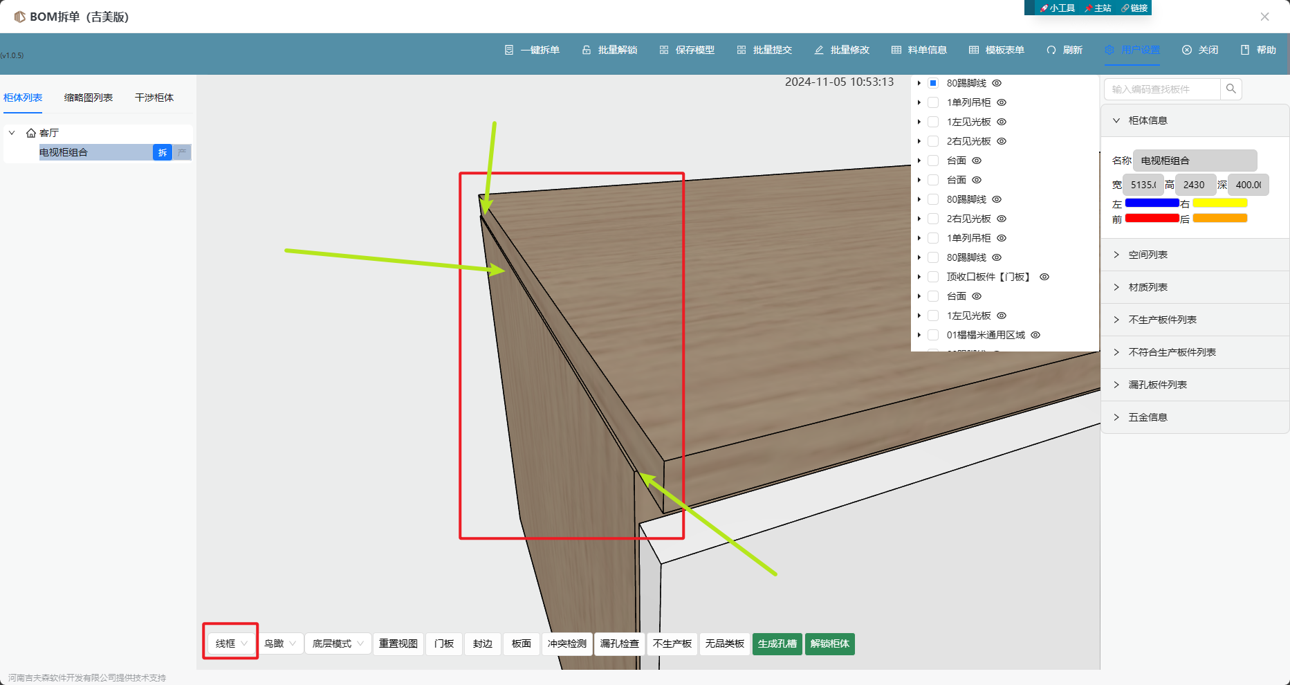 方式1:可开启线框模式去检查板件间是否有错缝: