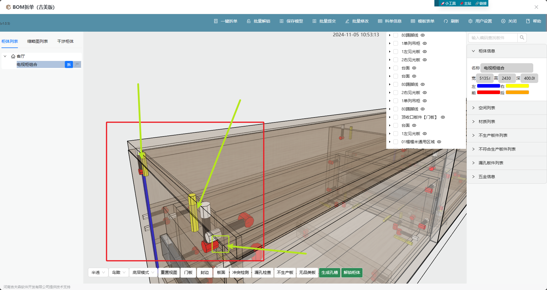 ————需要返回设计方案,将板件的宽度尺寸调整完善后,重新进入bom拆单生成孔槽;