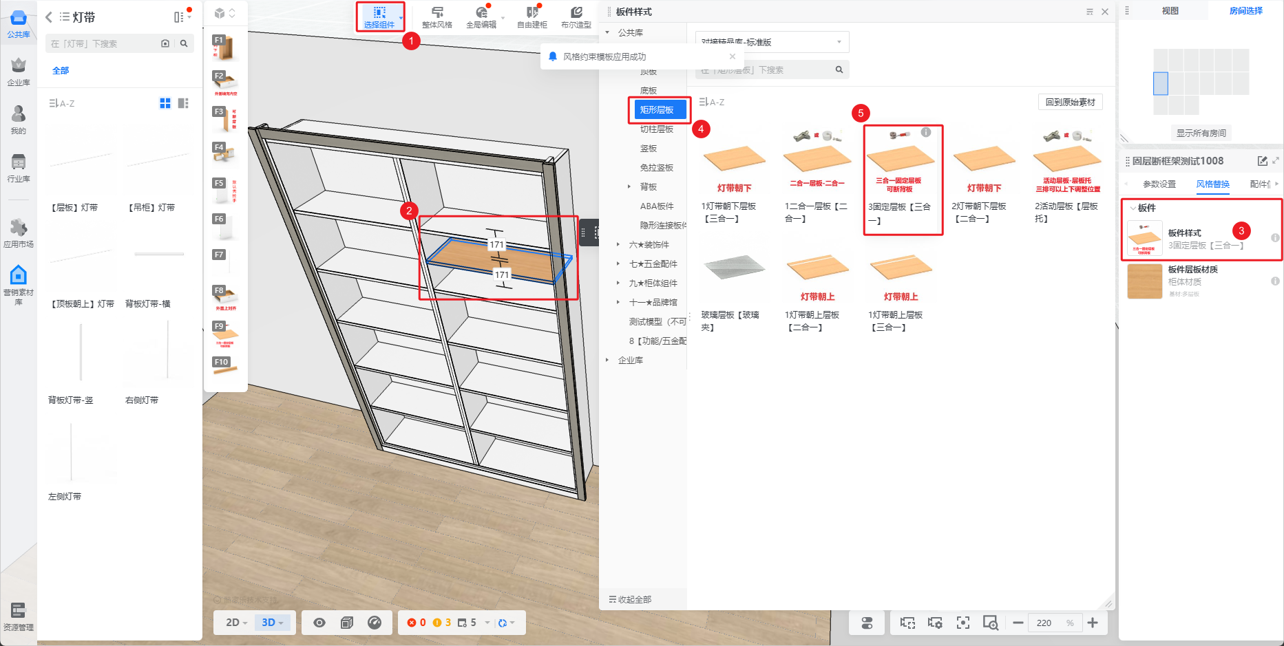 - 需要返回设计界面,通过风格替换这块无品类编码的板件为有品类编码的板件: