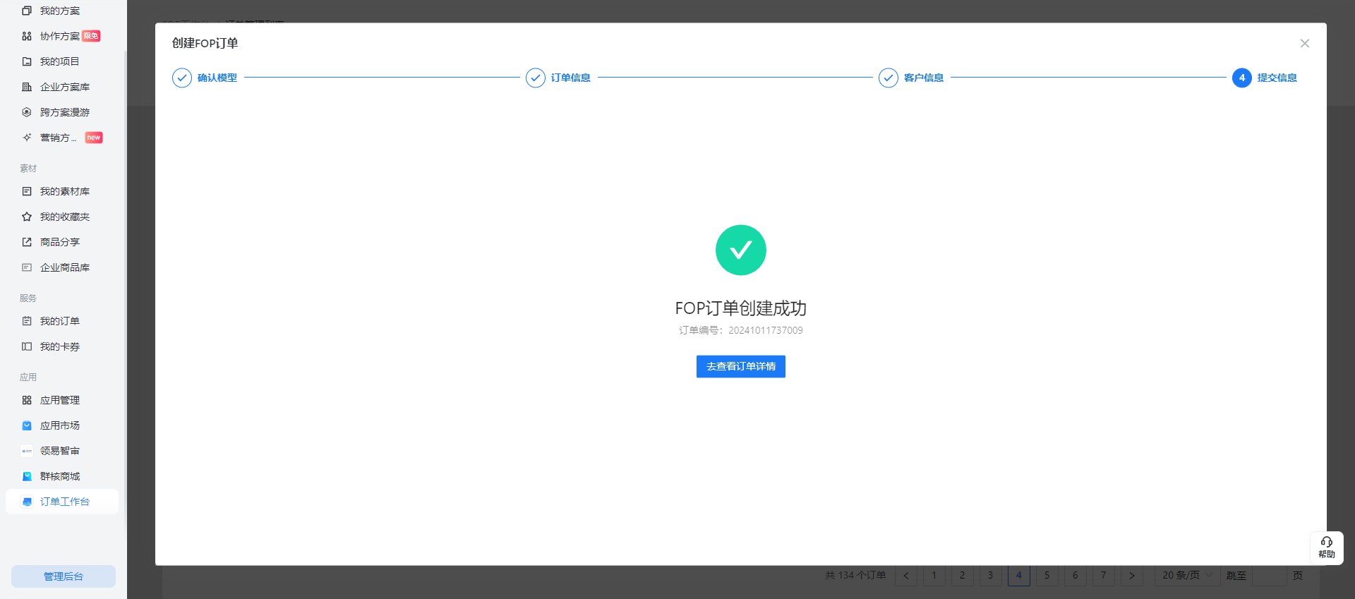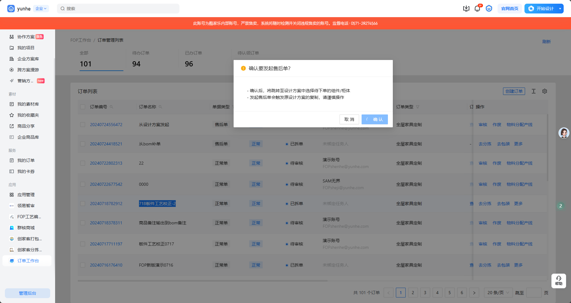 点击“发起售后单”-“从设计方案发起”后,需要手动点击“确认”按钮后,自动将订单方案复制为1个新的方案