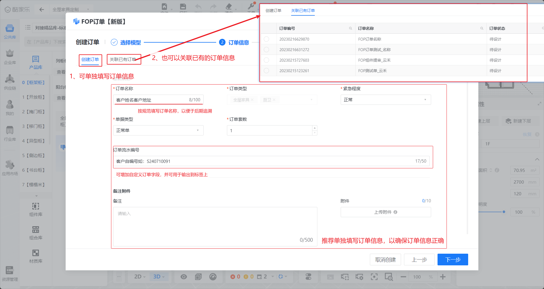 规范填写订单信息,以便于设计员/审拆员查找订单:客户姓名客户地址(如:张三正源汇7栋1101)紧急程度及备注、附件信息,若有自编号也可单独增加自定义字段(需联系实施老师辅助配置)