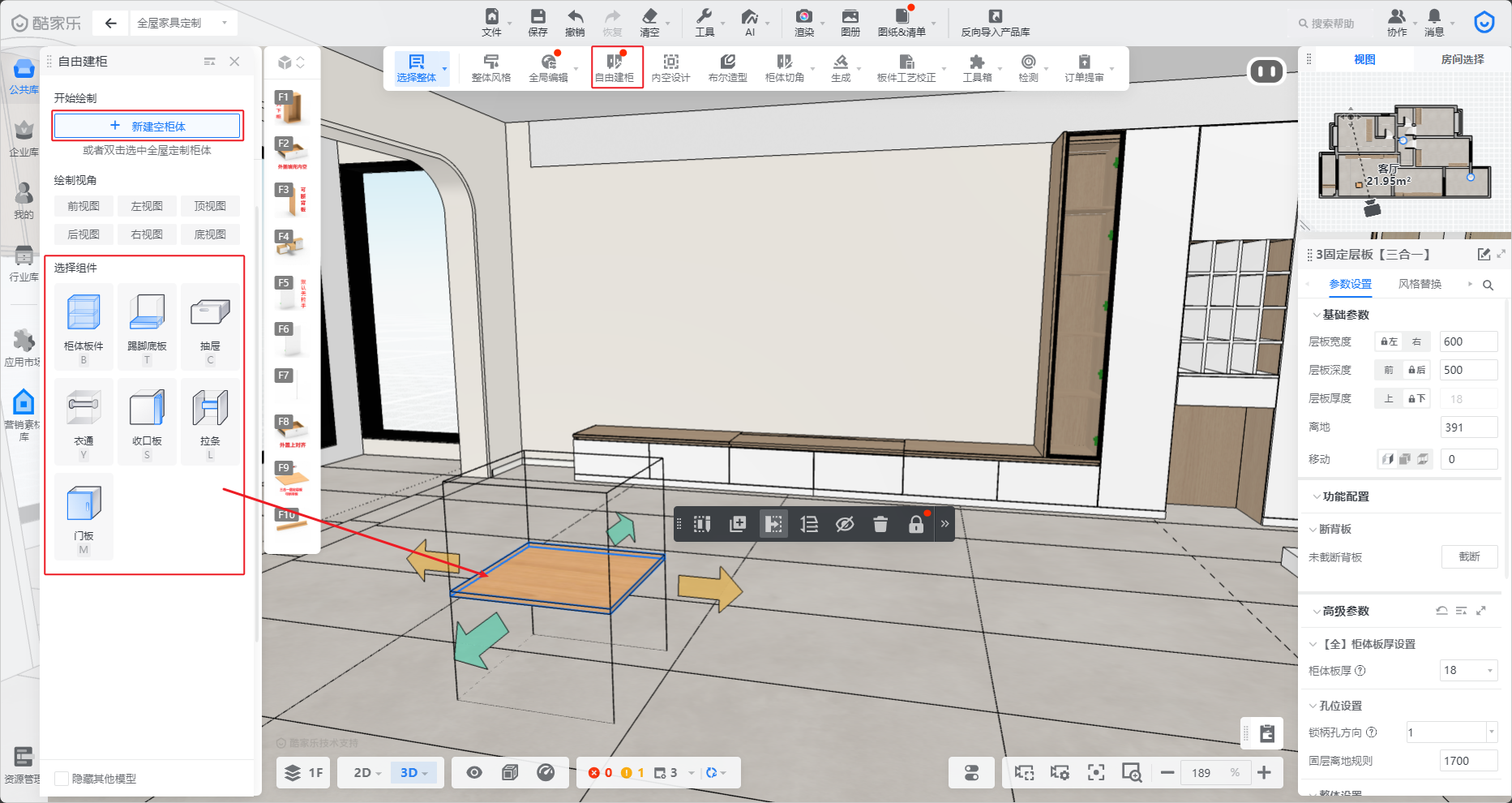 可直接使用“自由建柜”作为框架,然后,在框架内添加组件即可;