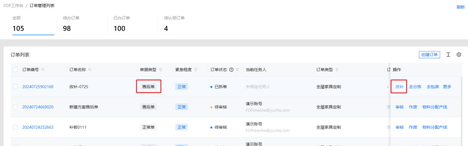 本文将讲述运用【全线订单】进行售后单【原孔改尺】的操作方式;
