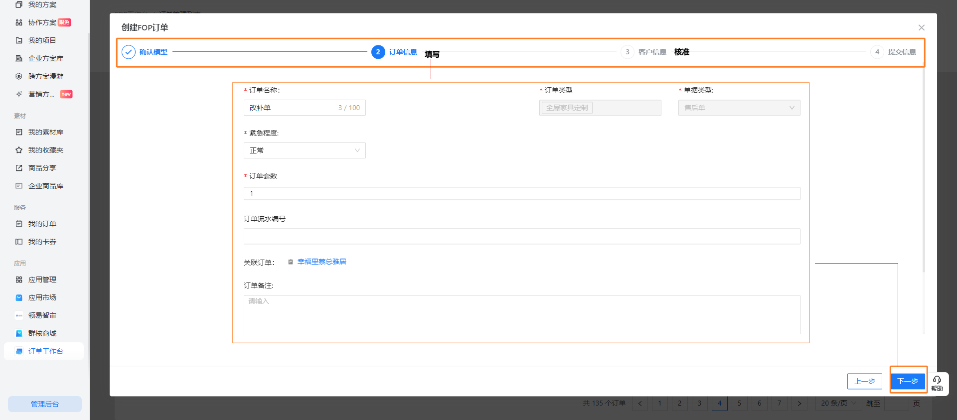3)补板选择完成后,即可填写核准订单信息、客户信息,完成售后单创建: