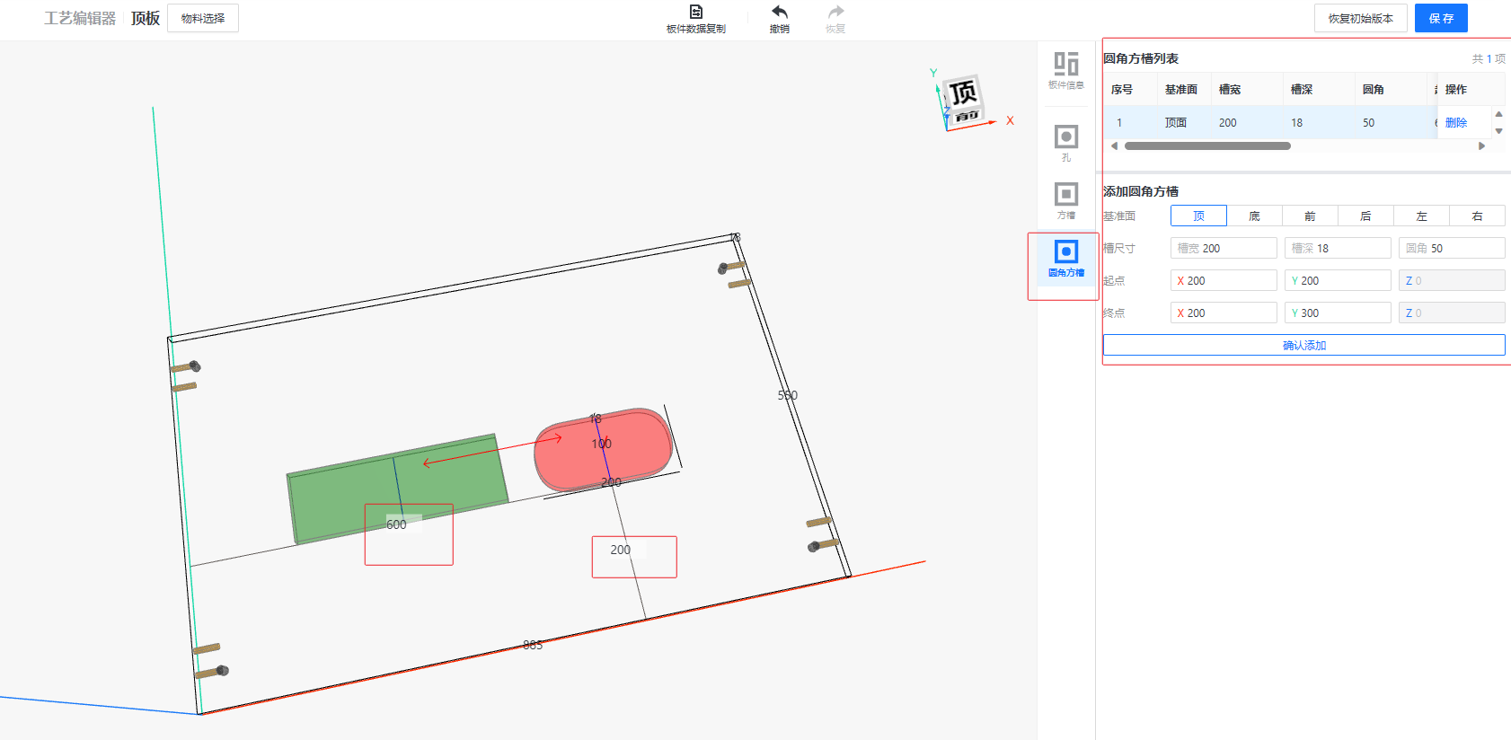 可点“圆角方槽”栏,进行圆角方槽的修改、新增或删除