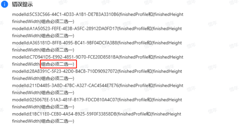 2. 报错关键词:finishedProfile和(finishedHeightfinishedwidth)组合必须二选一