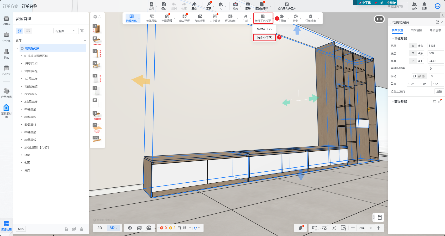 配置后,在下次进入bom拆单前,先进行板件工艺校正-按企业规则校正后,再进去bom拆单