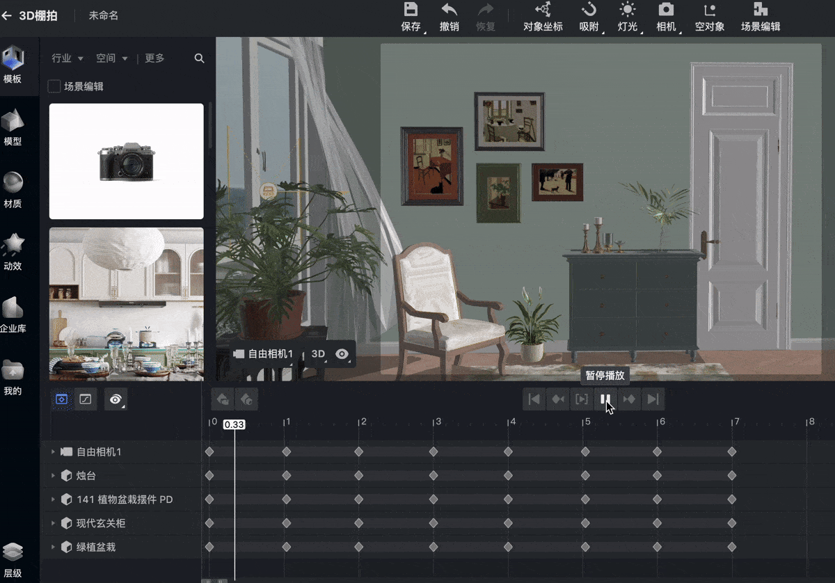 - 初次打开影棚会默认有一个自由相机,且默认在该自由相机的视角下