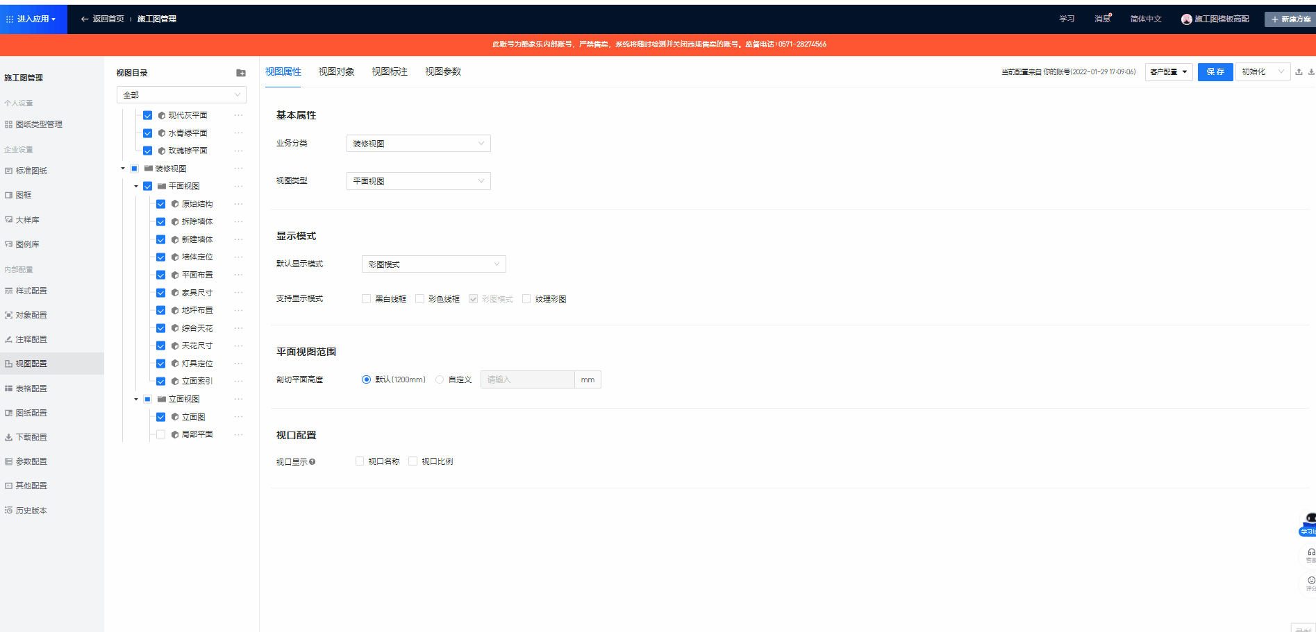 tips:除了这里的视图列表,其它配置界面的视图列表和图纸列表,都支持一键收起/展开