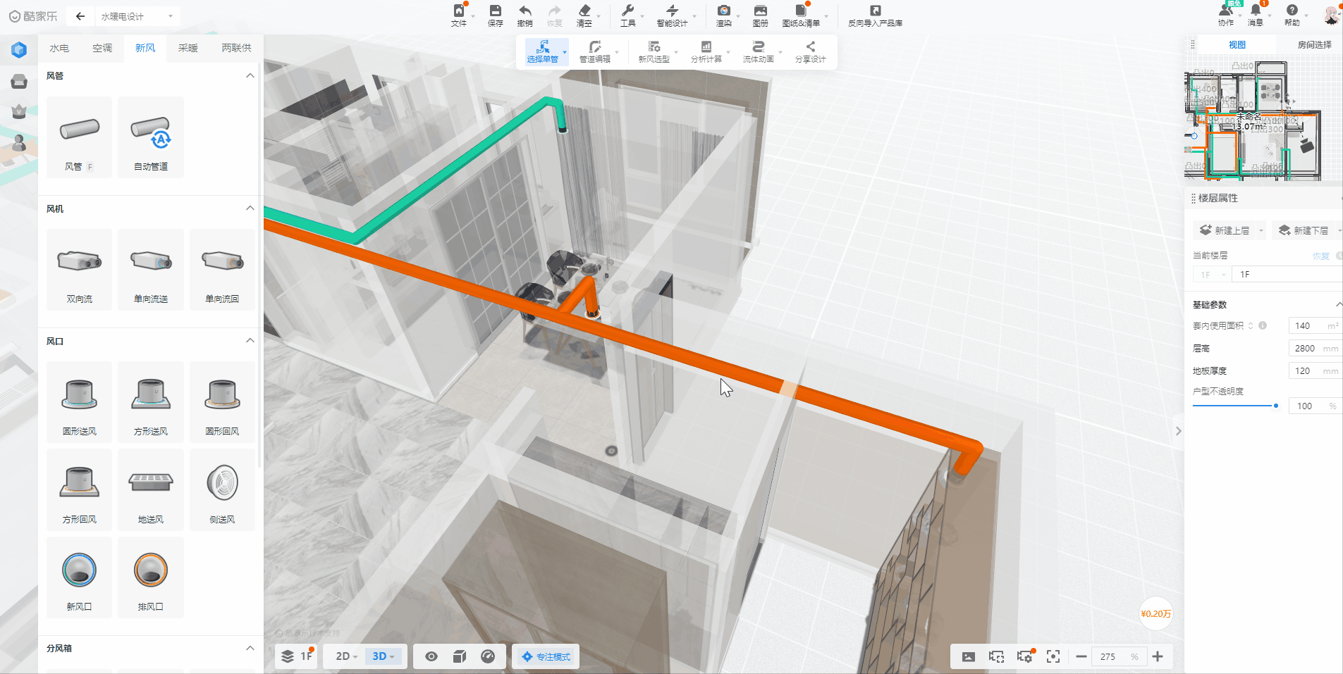 注:2D和3D视图下均支持管道多选、分段、均分、等间距、避让