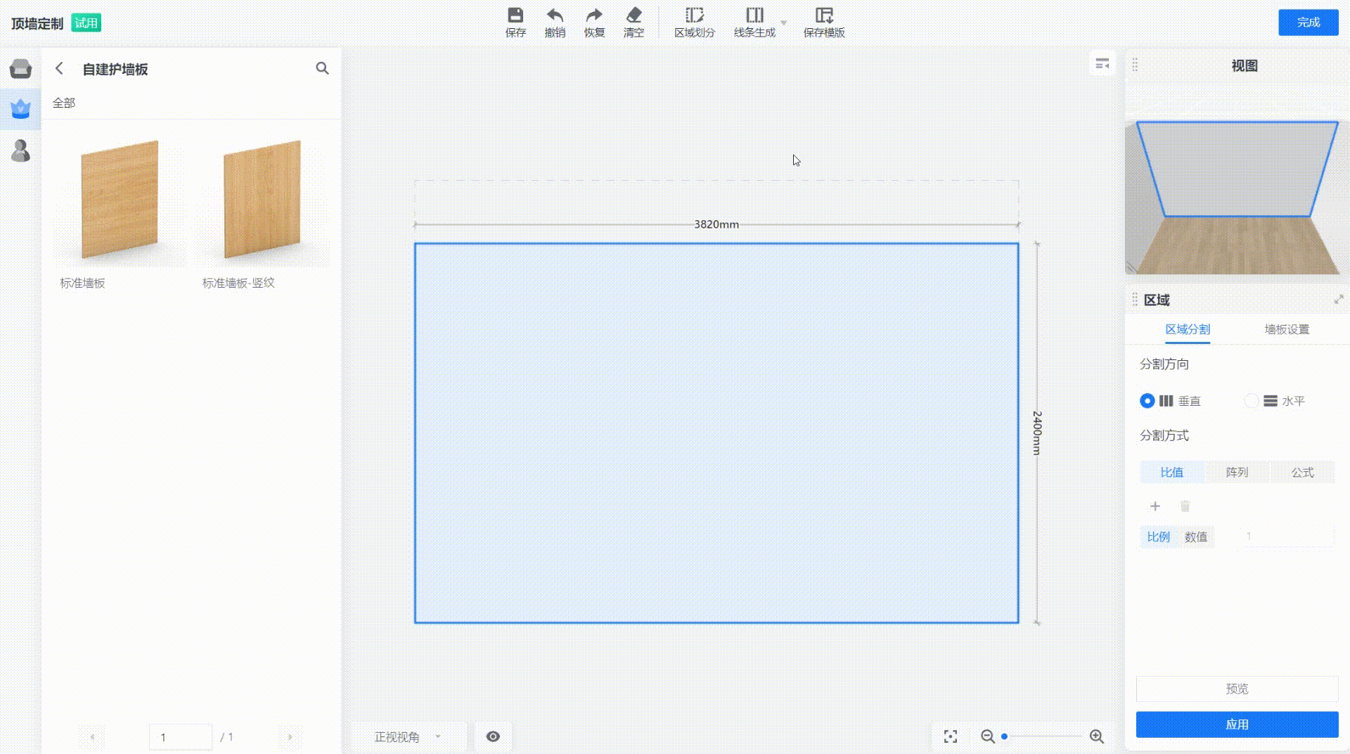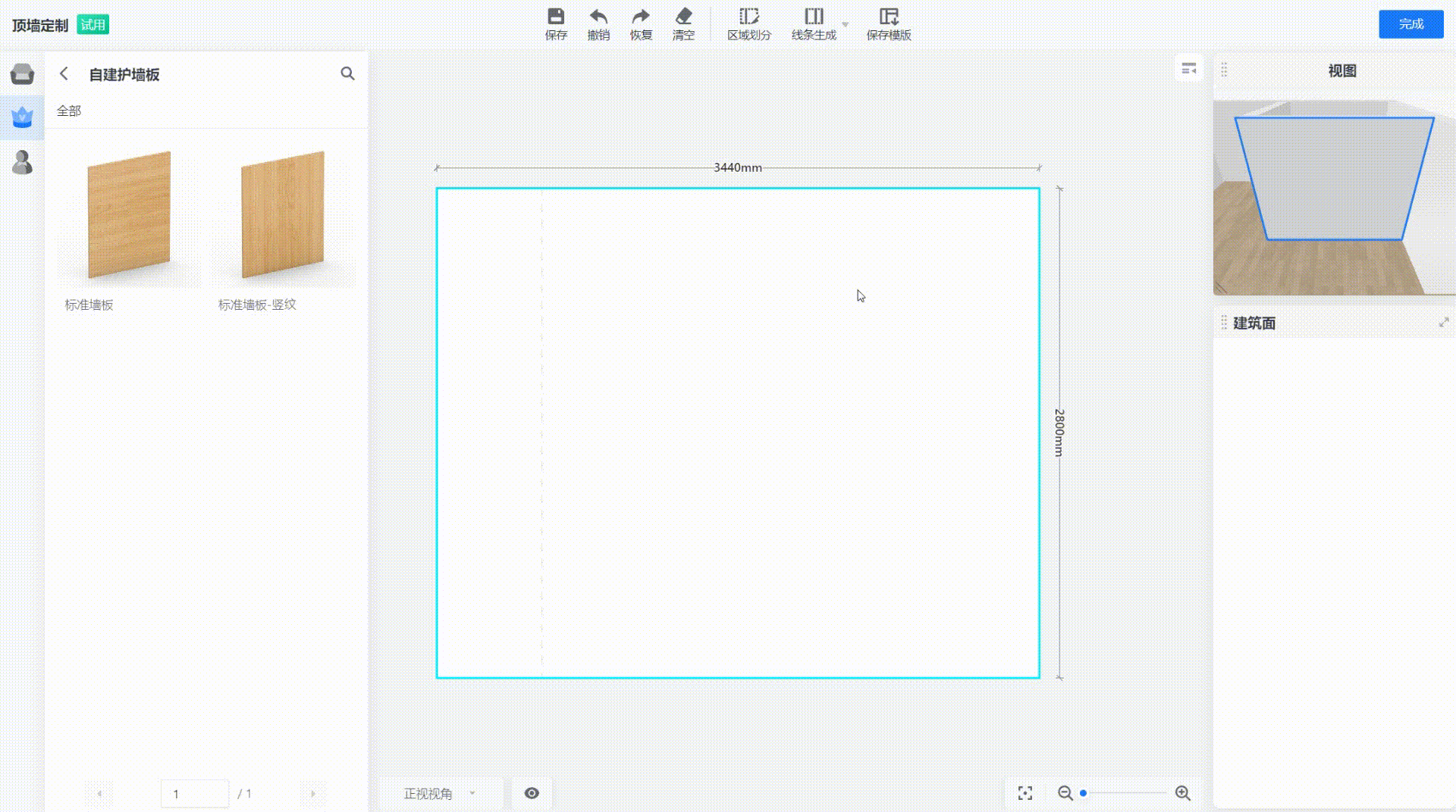 功能路径:从行业库-全屋家具定制 (或门窗定制)中,选中墙面,进到“顶墙定制”中