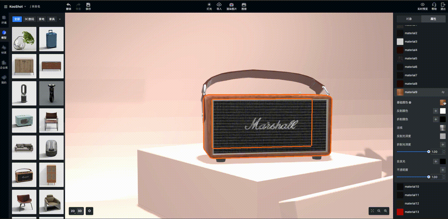 支持对公库材质进行编辑,以及贴图上传功能,丰富了材质效果