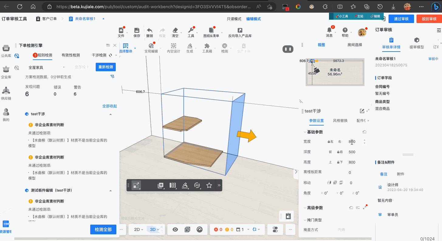 4、如果选择【否】,在设计师的设计方案→订单提审详情面板中,不会提示有模型修改需要同步。